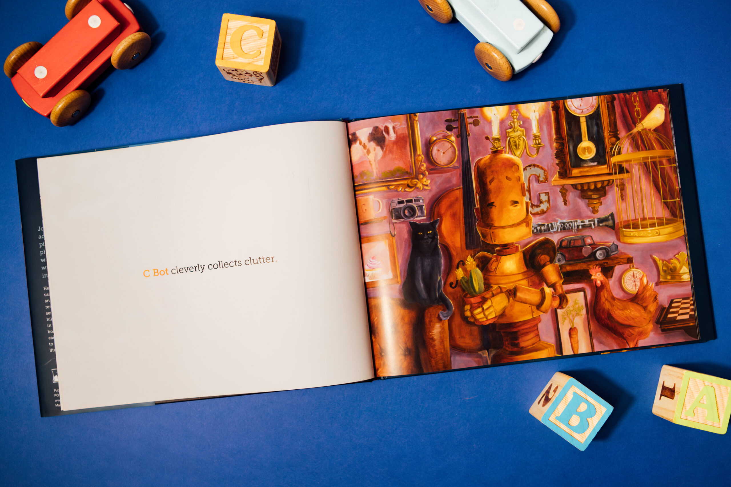 Join a crew of whimsical robot friends as they float and fly through the alphabet on their magical adventures. Featuring alliterative sentences like “Hiking bot is happiest in the hills” and “M Bot makes magical music in the moonlight,” this alphabet book uses humour and wordplay to bring each letter to life.