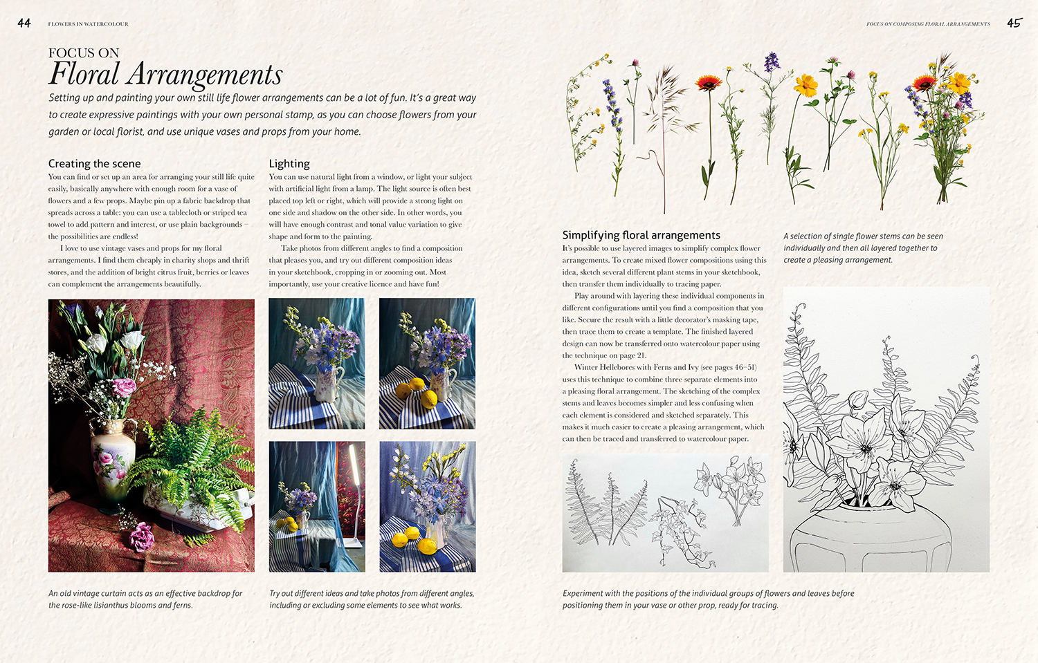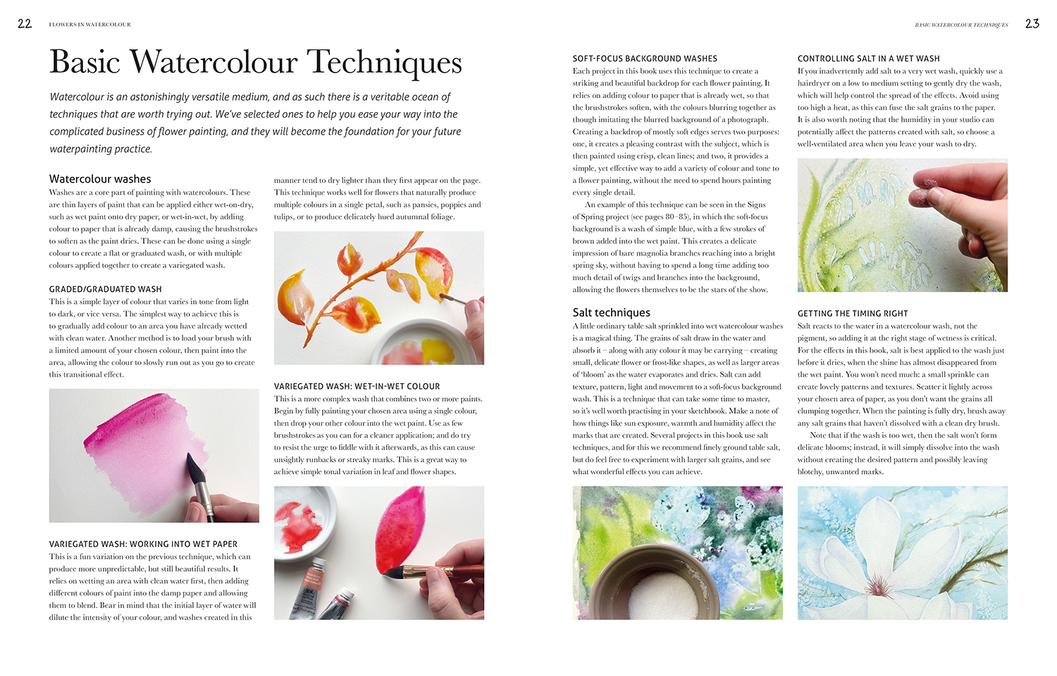 The book includes 10 subjects to paint, including wildflowers, garden favourites and exotic blooms. It also contains ‘focus on’ spreads that provide greater detail and more advanced techniques to try. It is designed to act not only as a guide to flower painting, but an introduction to the medium of watercolour.