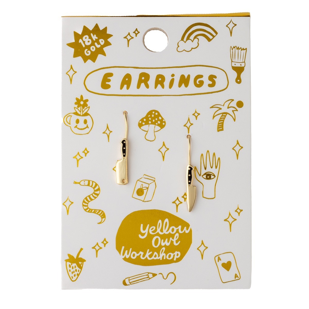 *Presented in a matchbook-style gold foil box, our signature mismatched earrings feature 18k gold gilt enamel on hangingĀ ear wire. Hypoallergenic, nickel, lead, and cadmium-free.