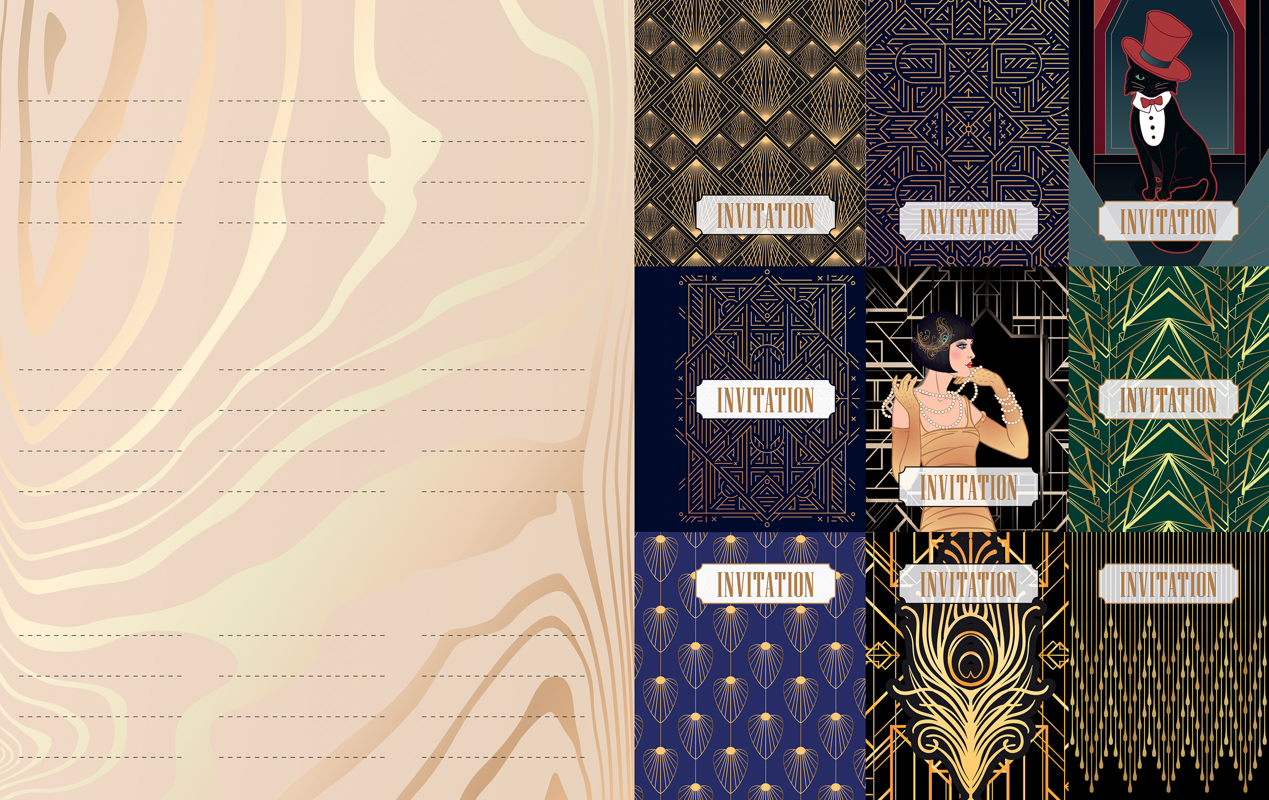 The book takes a trip back in time to some of the most lavish trends of the 20th century, the roaring 1920s and the art deco movement. Add glamour, elegance, and unmistakable style to everything from writing paper, gift cards, and wall art to postcards, envelopes, and bookmarks. Dive into a collection designed to inspire the enjoyment and extravagance of living life to its fullest.